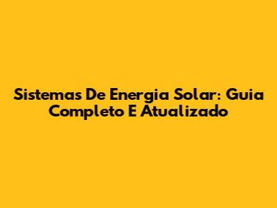 Sistemas De Energia Solar: Guia Completo E Atualizado